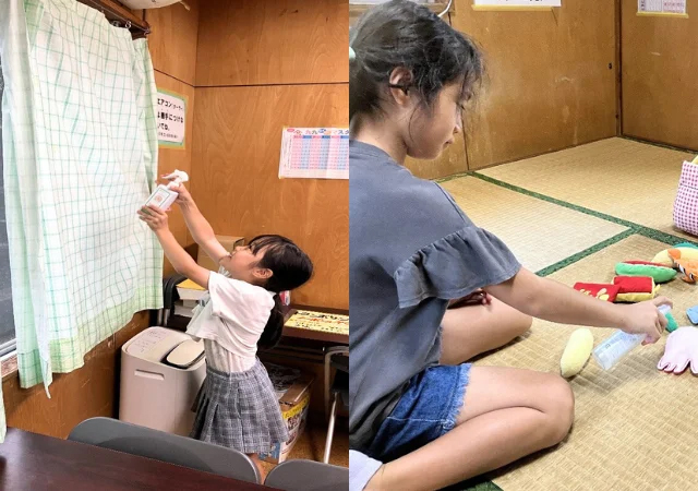 西原町立西原東児童館での使用様子(左:アレルフリー 右:ナチュラルミスト)